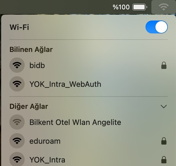 1. Wi-fi listesinden "eduroam" yayınının üzerine tıklanır.