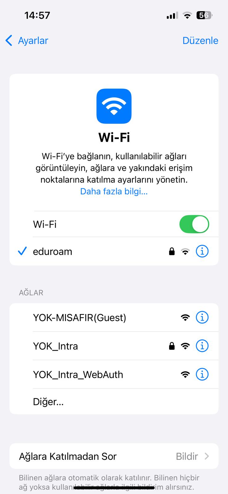 Eduroam İOS Ayarları